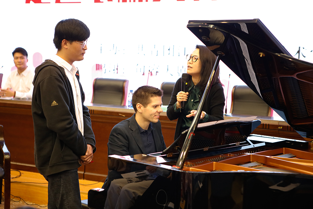 活动现场布鲁诺·瓦莱尔克先生分别指导了五位同学,并与现场同学亲切互动。活动最后布鲁诺·瓦莱尔克先生倾情演奏一曲,他的专业和亲和赢得了现场阵阵掌声。