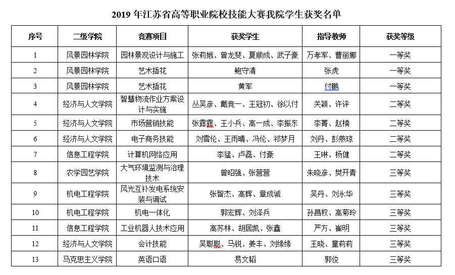 3月8日至11日,由江苏省教育厅主办的2019年江苏省高等职业院校技能大赛落下帷幕。永利官网学生参加了10个大类24个项目,共获得3个一等奖、4个二等奖、6个三等奖,获奖等次和数量位列全省高职院校前列。