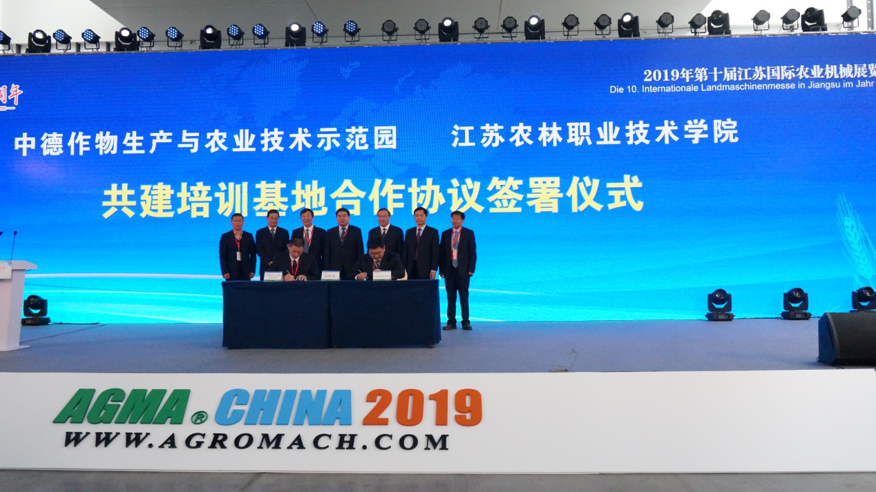 俞卫东书记在签约仪式上致辞并见证签约。周兴元副院长代表学院与江苏省农垦集团有限公司签署了战略合作框架协议。曹仁勇副院长代表学院与中德作物生产与农业技术示范园签署了共建培训基地合作协议。