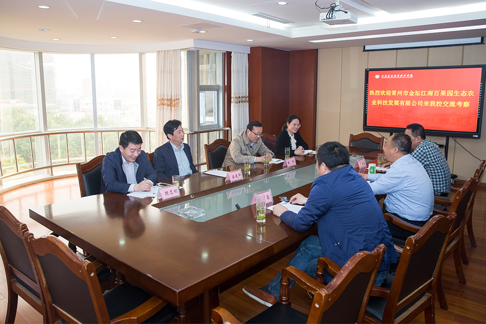 4月24日下午,常州市金坛江南百果园生态农业科技发展有限公司董事长曹庚华一行四人来永利官网洽谈校企合作事宜,巫建华院长及相关部门负责人出席了洽谈会。
