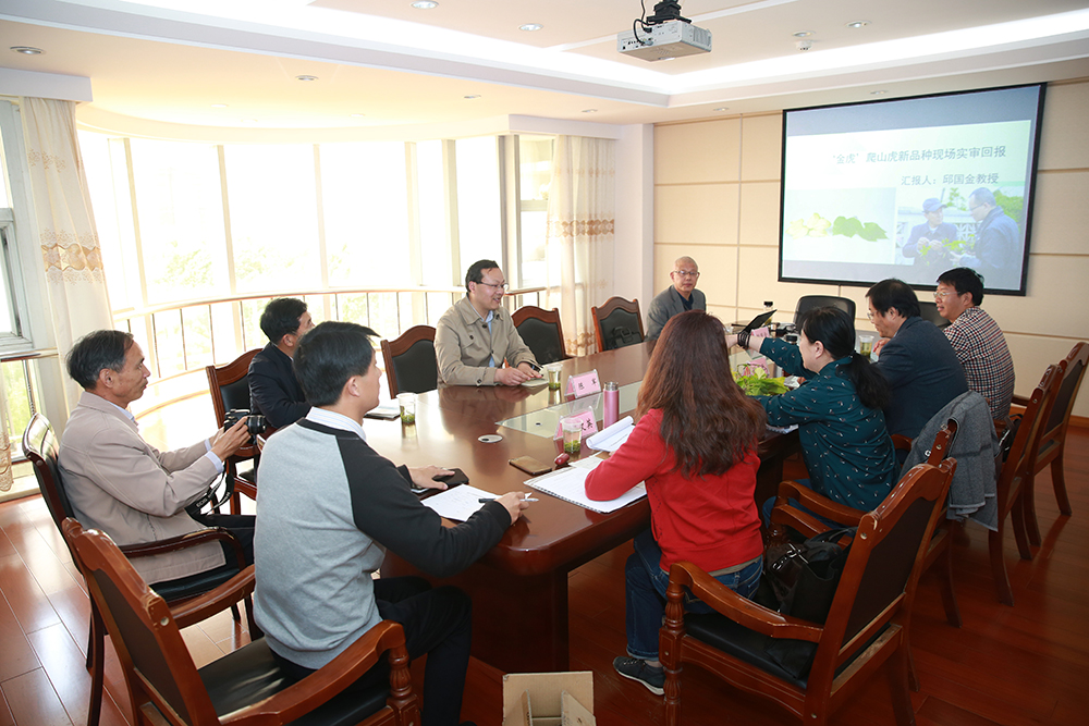 5月6日上午,受国家林业和草原局植物新品种保护办委托,中国林科院孙振元研究员、中国科学院植物研究所唐宇丹教授级高工、北京林业大学吕英民教授组成专家组,对永利官网邱国金教授课题组选育的“金虎”爬山虎新品种进行了现场审查。学院副院长周兴元及课题组相关人员共同参加了现场查看和评审会。