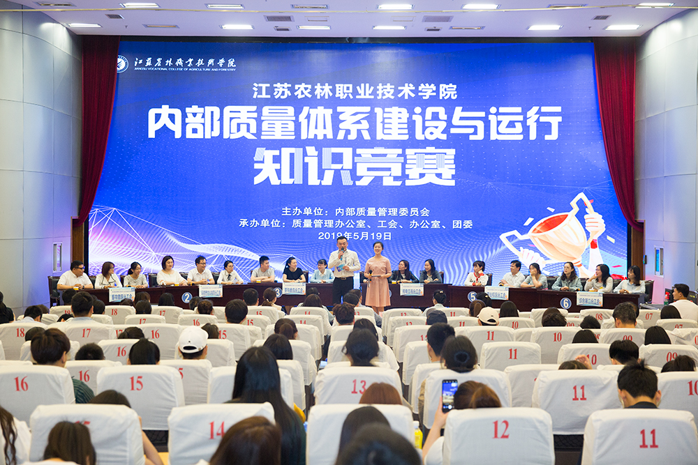 5月19日下午,在图书馆报告厅举行内部质量体系建设与运行知识现场竞赛,来自各分工会的十二支代表队参加。副院长周兴元、工会主席江德明以及督导处、办公室、妇联、团委等部门负责人共300多名师生来到了比赛现场。周兴元副院长在致辞时强调竞赛既是诊改工作有序推进的一个载体,也是对诊改知识学习效果和质量文化意识形成的一次检阅和展示。
