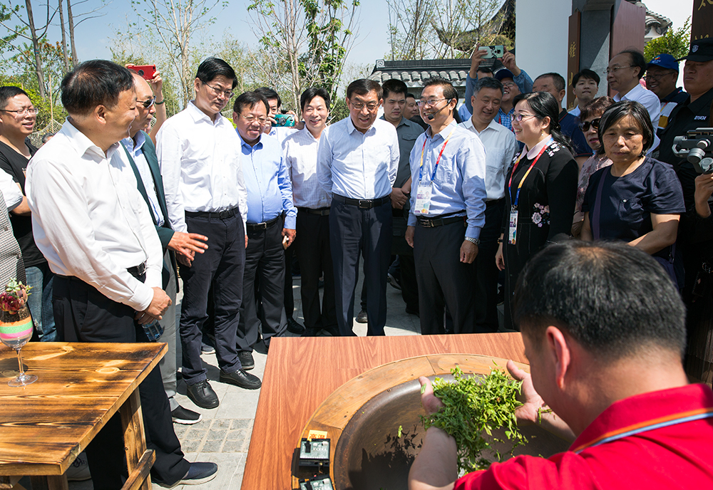 6月2日上午,全国政协副主席、中华全国总工会副主席、中华职业教育社副理事长马培华视察世界园艺博览会江苏园。