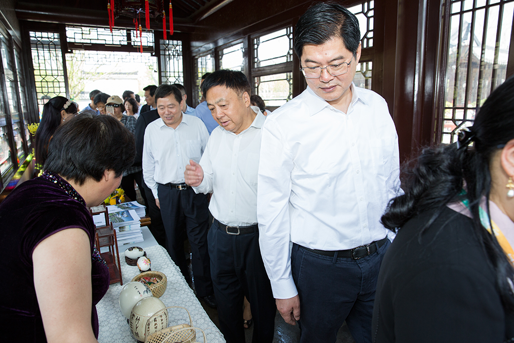 魏国强在活动致辞中说,在此次世园会上,江苏将生态文明建设与现代园艺发展的最新成果融入展园展区的设计建造中,希望来宾们走进江苏园,一览江苏工匠献上的经典江南特色园林,欣赏由盆景插花、名优茶叶、休闲农业、非遗文化等构成的江苏农业农村绿色画卷,领略水韵江苏的“最靓颜值”。
