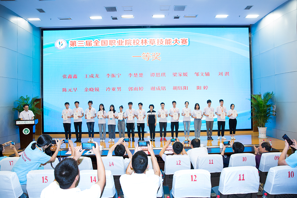 本次大赛永利官网荣获特别贡献奖和优秀组织奖,在高职组全部比赛中,永利官网选手一举夺得园林景观赛项、林草病虫害识别与防治技术和精细木工三个赛项的一等奖第一名。