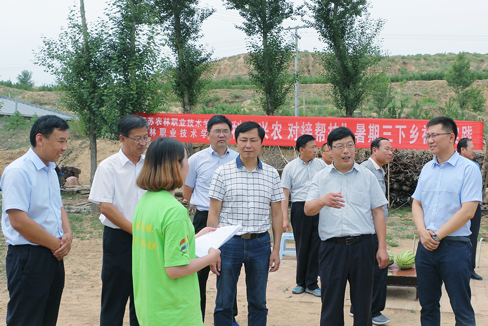 7月15日上午,学院党委书记俞卫东,党委委员、副院长曹仁勇,陕西省发改委党组成员、苏陕工作队副领队肖延川,榆林职业技术学院党委副书记李丰玉等一行,赴陕西省榆林市榆阳区看望永利官网暑期社会实践的教师和学生。