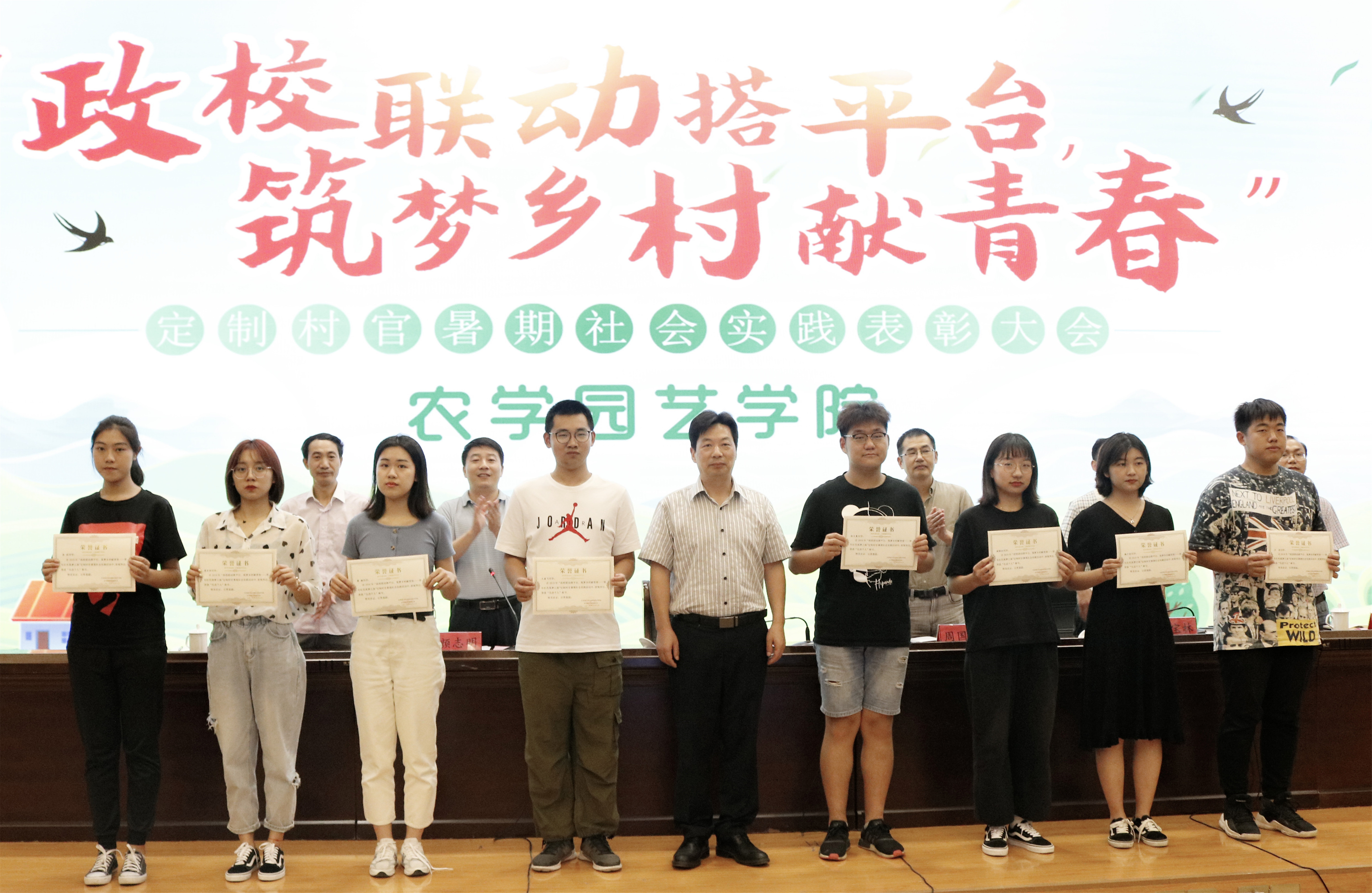 会上,农学园艺学院介绍了此次“政校联动搭平台,筑梦乡村献青春”定制村干暑期社会实践活动的开展情况,宣读了表彰决定,受表彰学生代表作了交流发言。