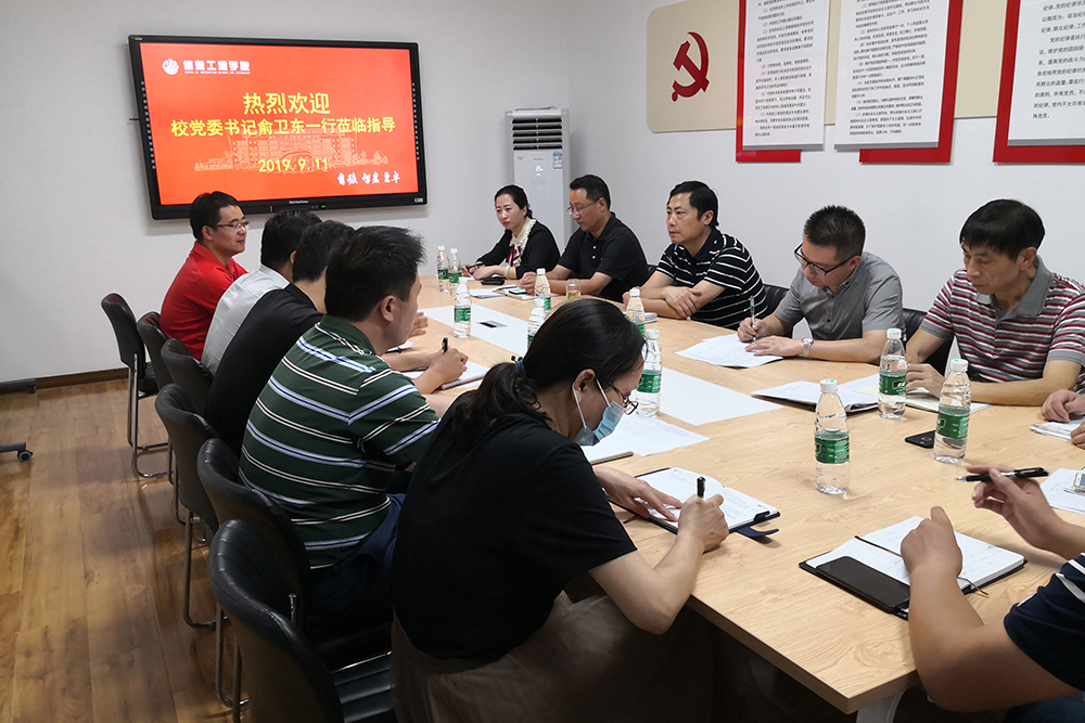 9月11日下午,学院党委俞卫东书记到信息工程学院、机电工程学院、经济与人文学院调研。办公室、组织人事处、宣传部、党建办、教务处、学工处负责同志参加了调研。