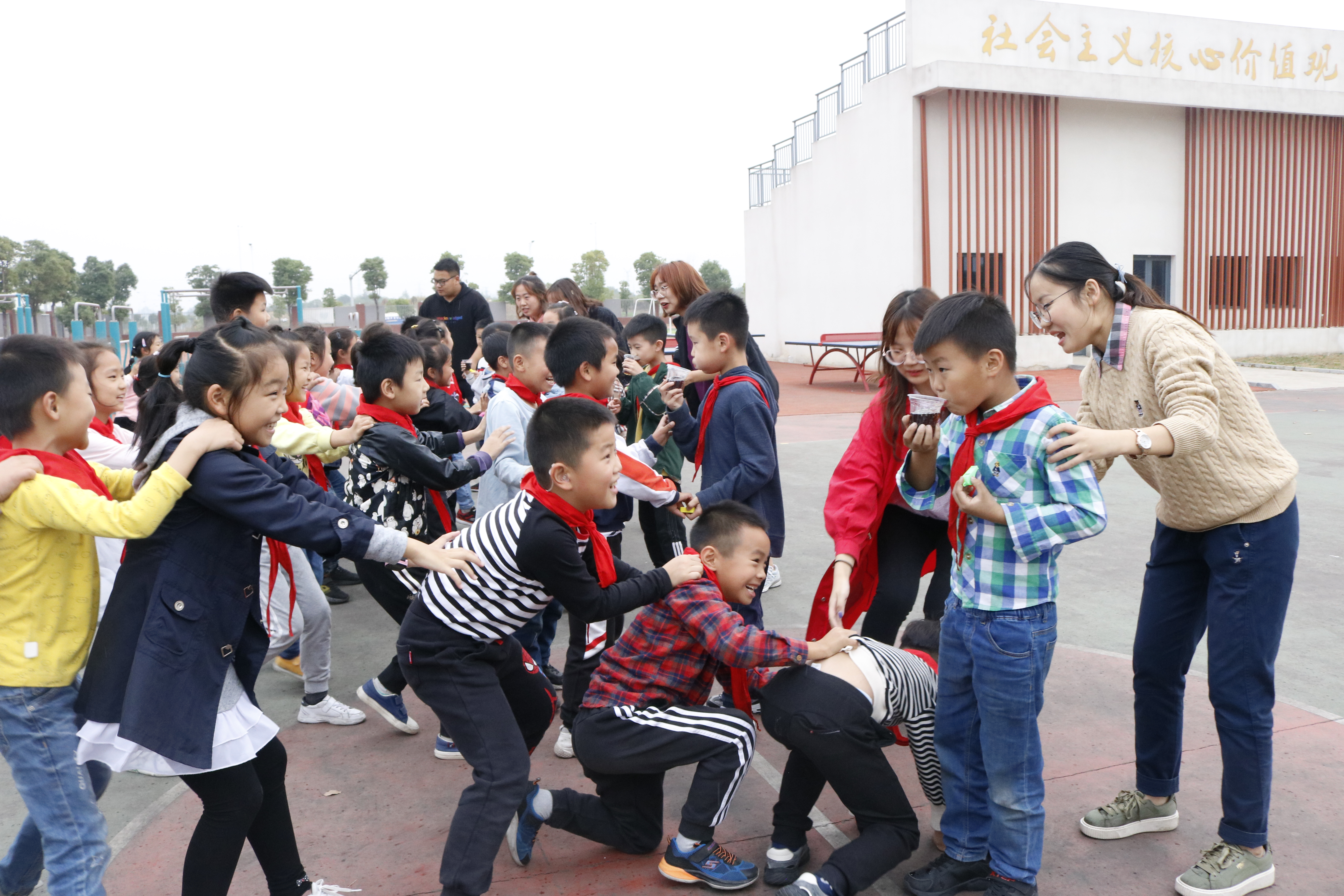 本次活动共有四个环节:桃花朵朵开、珠行万里、击进少年、搭桥过河。游戏内容简单易懂,亮点不断。大学生志愿者和孩子们玩得热火朝天,孩子们稚嫩的脸上洋溢着幸福的笑容,操场上回荡着欢声笑语。游戏过程中,志愿者们被孩子们纯粹的快乐所感染,逐渐放开了同学之间交往时拘谨的心。