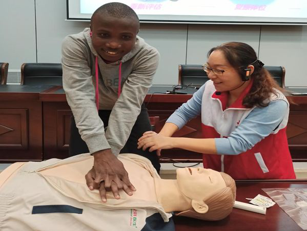 11月13日,句容市红十字会沈云霞医生为全体留学生带来了应急救护与意外伤害处理讲座。沈医生专门给留学生讲解了心肺复苏、气道梗阻的操作方法,特别是对校园运动型损伤的处置、食物中毒的预防和避免踩踏事件的发生等方面进行了讲解,提高了留学生的安全意识和自救互救能力。