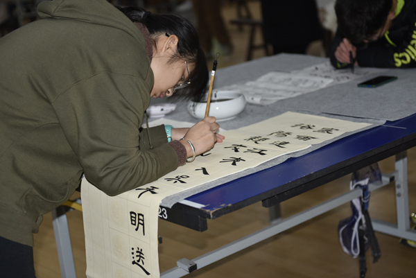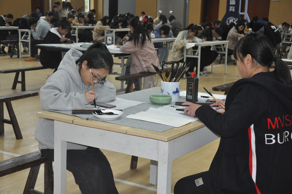 此次大赛得到了永利官网书法爱好者的积极响应,通过翰墨农林书法社的大力宣传和组织,有将近200余名学生踊跃报名。比赛开始,同学们在古典古筝音乐中纷纷提笔,认真专注,挥毫泼墨,各显才能。参加本次书法大赛的同学们,经过2个小时的精心创作,递交了内容丰富,形式多样的硬笔和软笔共200多幅书法作品。这些作品有的端正秀气,运笔熟练,提按分明,有的舒展大方,运笔流畅,行款整齐。
