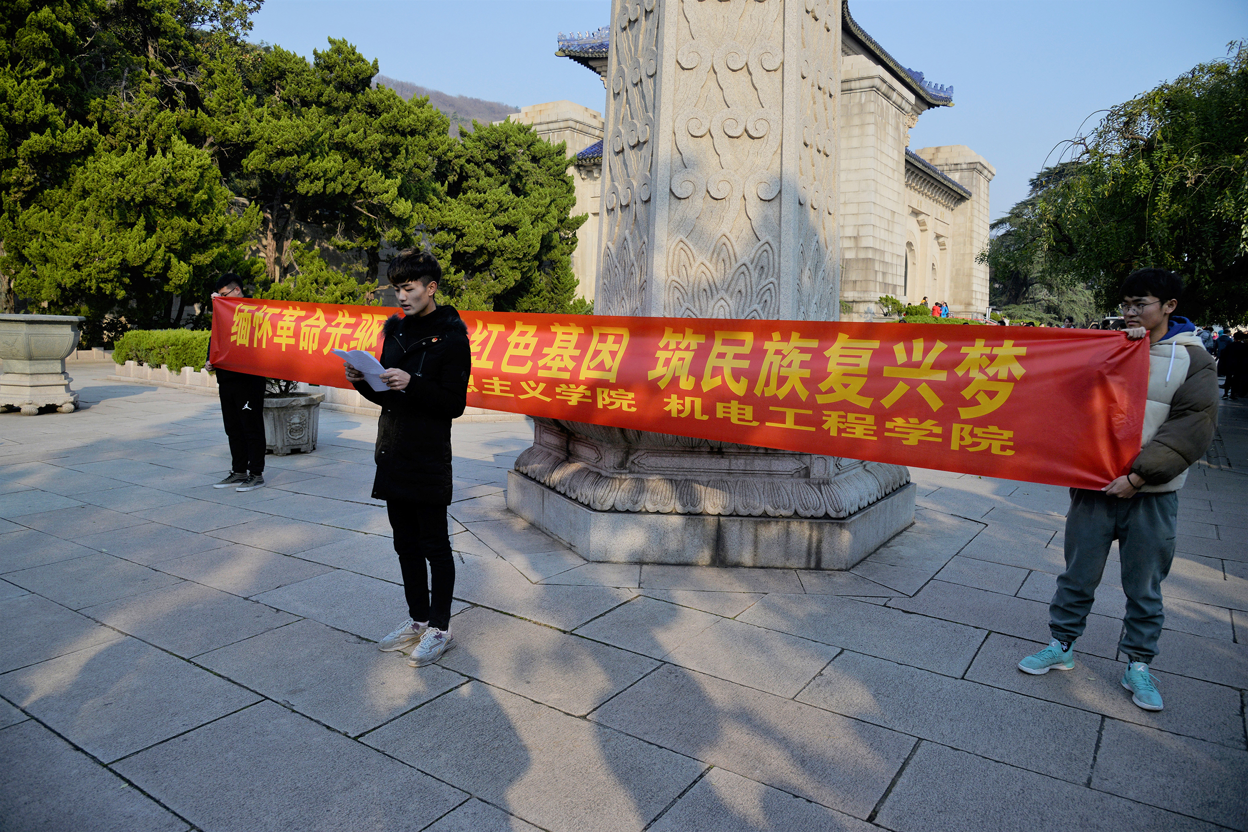 为引导学生明史、立志,12月5日,马克思主义学院与机电工程学院联合开展“缅怀革命先驱传承红色基因筑民族复兴梦”教育活动。机电工程学院党总支副书记李杨带领19级新生代表和“青马课堂”学生骨干前往中山陵爱国主义教育基地参观学习。