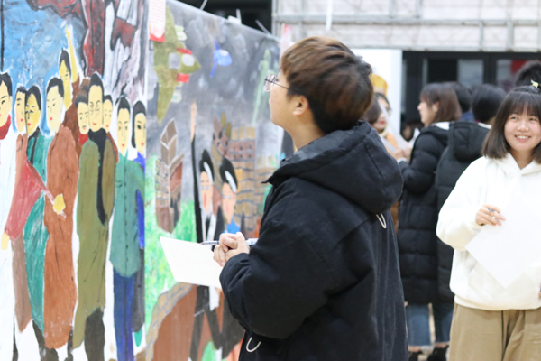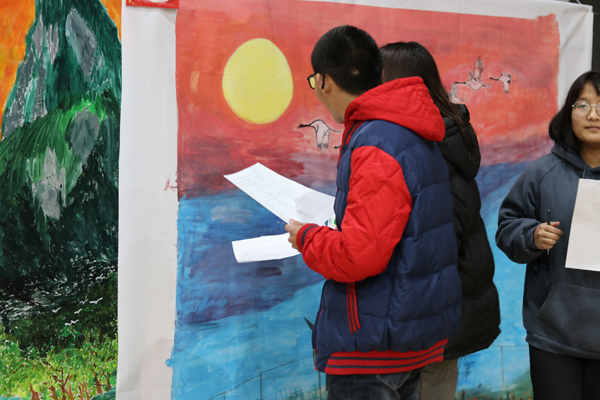 经过264名学生大众评审和16名老师的评审,最终评出16幅优秀作品,其中,学生会成员带来的《振兴中华》、19林业技术2班的《纤纤不绝林薄成,涓涓不止江河生》、19畜牧兽医1班的《鹤飞远方 梦想起航》三幅作品荣获本次大赛一等奖。