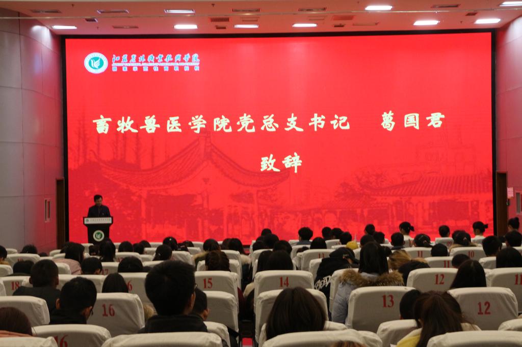 12月20日下午,2019年度“大北农”励志奖学金颁奖典礼在图书馆报告厅隆重举行。来自大北农集团的江苏区人力经理董小丽和江苏宿迁区域人力经理冯靖捷,永利官网学工处副处长杨红进、畜牧兽医学院党总支书记葛国君、副书记刘庆新、副院长王会聪出席了本次颁奖仪式。