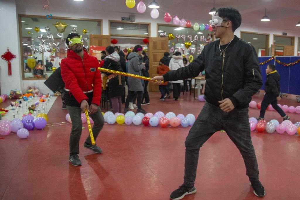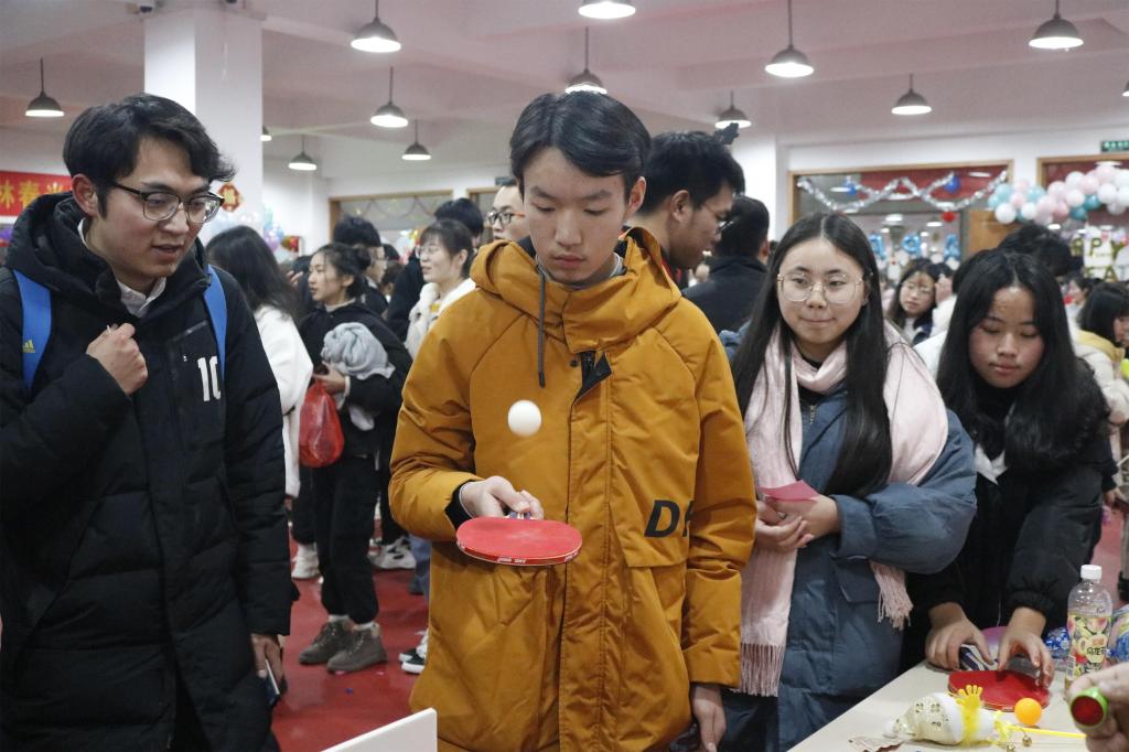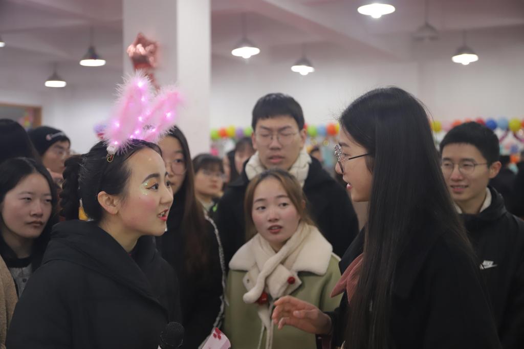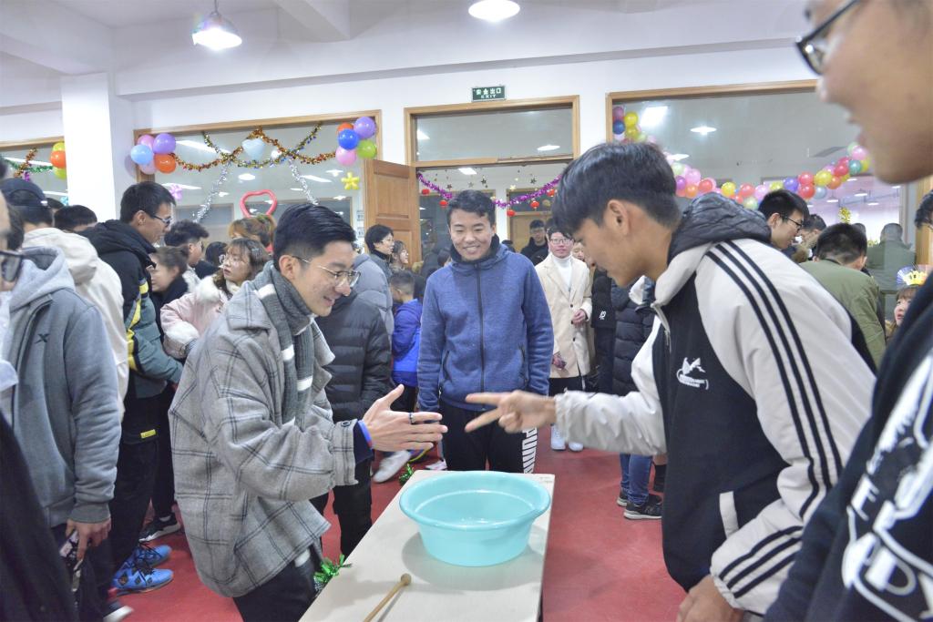 活动现场张灯结彩,处处欢声笑语,洋溢着节日的喜庆氛围,每间教室都有同学们精心设计的游戏,既有风景园林学院“欢声笑语迎元旦青春洋溢满园林”和农学园艺学院“鼠胆龙威 敢为农先”,也有畜牧兽医学院“曲屏深幌 花灯微漾”和茶与食品科技学院“鱼跃龙门 套住幸福”,既有经济与人文学院“青春游乐场”和机电工程学院“鼠岁报佳音 机电喜相迎”,也有信息工程学院“锦色游园 人潮寻‘鲤’”。活动现场,学院老师与同学们一起做游戏,师生们积极参与、乐在其中。此外,茅山校区“新人新语迎新年 载歌载舞游茅山”活动也在茅山校区分会场如火如荼进行中。