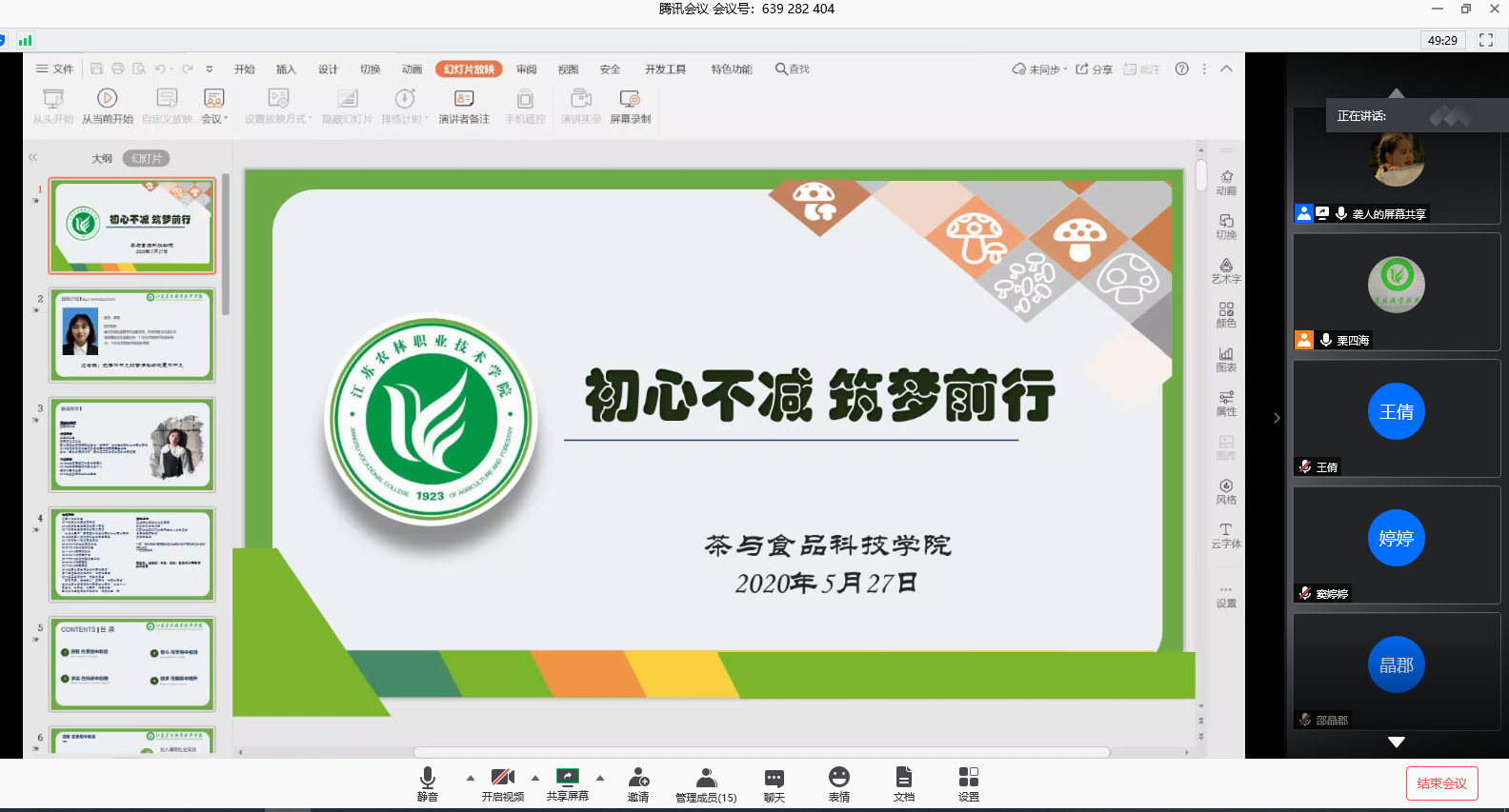 5月27日,茶与食品科技学院通过腾讯会议平台举办“初心不减 筑梦前行”国家奖学金获得者事迹线上分享交流会,该院18级、19级学生参加了分享交流会。