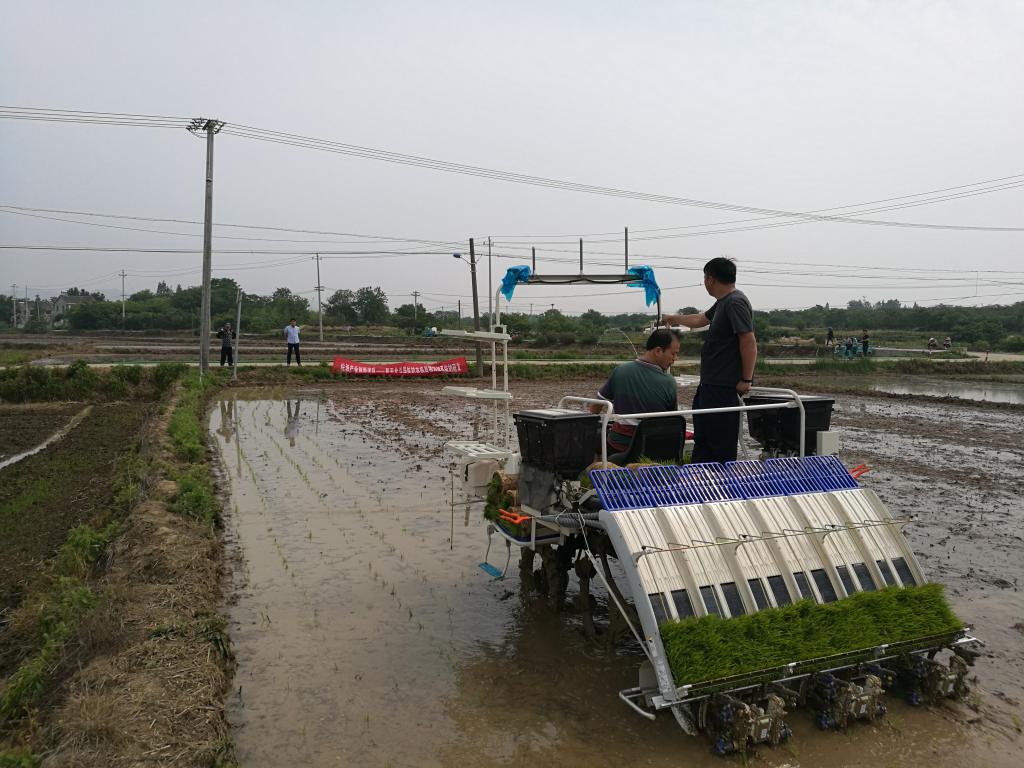 5月27日上午,机电工程学院农机专业教师在句容城武赵村利用无人驾驶插秧机进行插秧作业演示。农民只需要按下启动键就能在田里自动插种秧苗,大大减轻了农民的劳动强度。