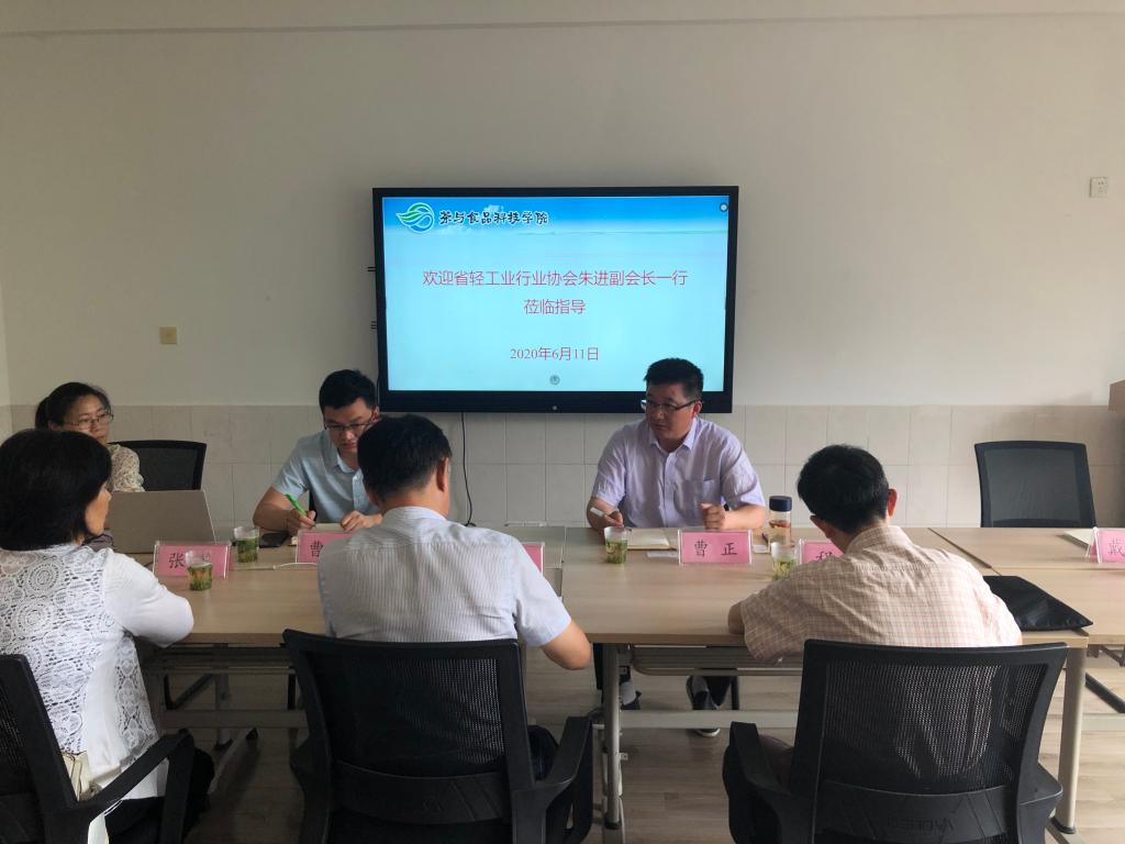 6月11日,江苏省轻工业行业协会副会长兼秘书长朱进、副秘书长张苏、副秘书长程健、办公室主任姜燕一行4人来茶与食品科技学院考察交流。该院院长曹正及食品加工教研室相关教师参加了座谈。