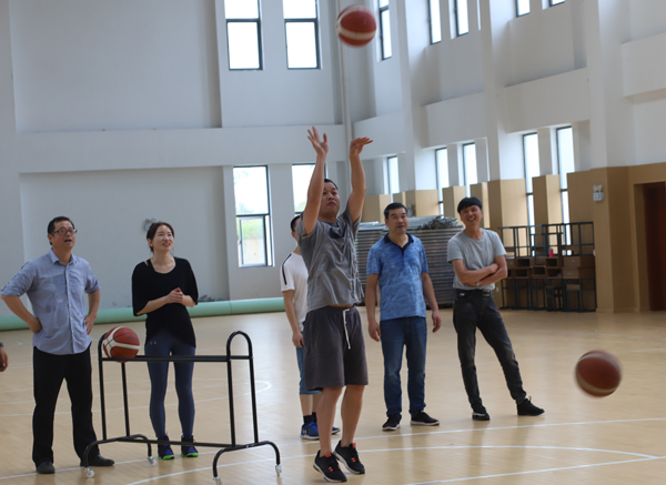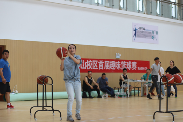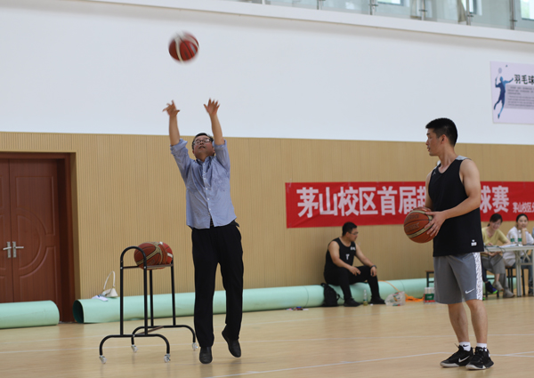 为了丰富教职工业余生活,加强体育锻炼,增强团队精神和集体凝聚力,茅山校区分工会于6月12日下午在校区体艺中心举办首届教工趣味篮球赛,共二十二名教工参与了此次活动。