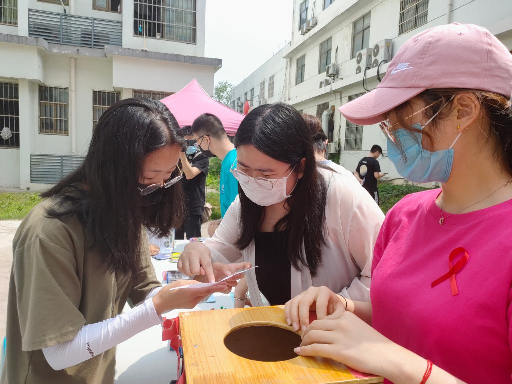 活动分为防艾知识竞答、HIV抗体检测指导、制作佩戴红丝带、发放防艾宣传手册等四个环节,向同学们普及了什么是艾滋病、艾滋病传播途径、防控方式以及艾滋病的“四免一关怀”政策等知识。此次活动让同学们对艾滋病有了进一步的认识,他们纷纷表示,在未来生活中将从自身做起,树立健康文明的生活方式,勇担防艾责任。