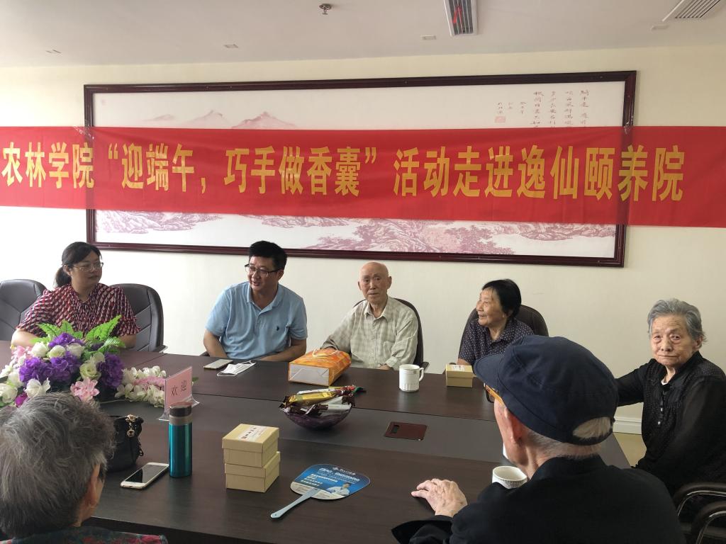 6月24日下午,学院工会、妇联、离退休办公室邀请教职工代表,前往句容市逸仙颐养院看望学院退休老同志,并将做好的香囊赠送给老同志们,共度端午佳节。