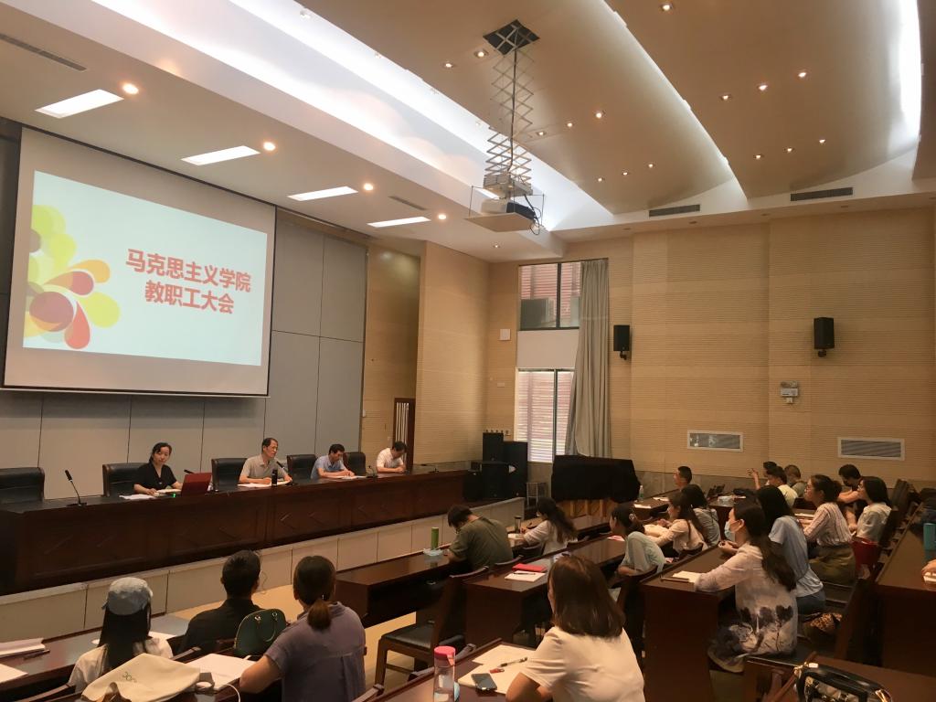 7月1日下午,马克思主义学院在研发楼报告厅召开全体教职工会议。会议由马万顺院长主持,马克思主义学院全体教职工参加。