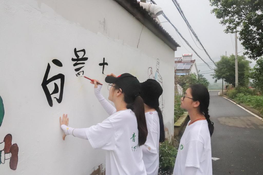 在十天的实践中,师生们克服炎热高温,完成大小墙绘共14面,得到了村民们的高度赞扬和认可。因成效卓越,风景园林学院分别佴池村、青山村建立长期合作关系,挂牌“美丽乡村”建设社会服务点,将“手绘墙”打造成乡村文明的新窗口,为乡村振兴、美丽乡村建设添砖加瓦。