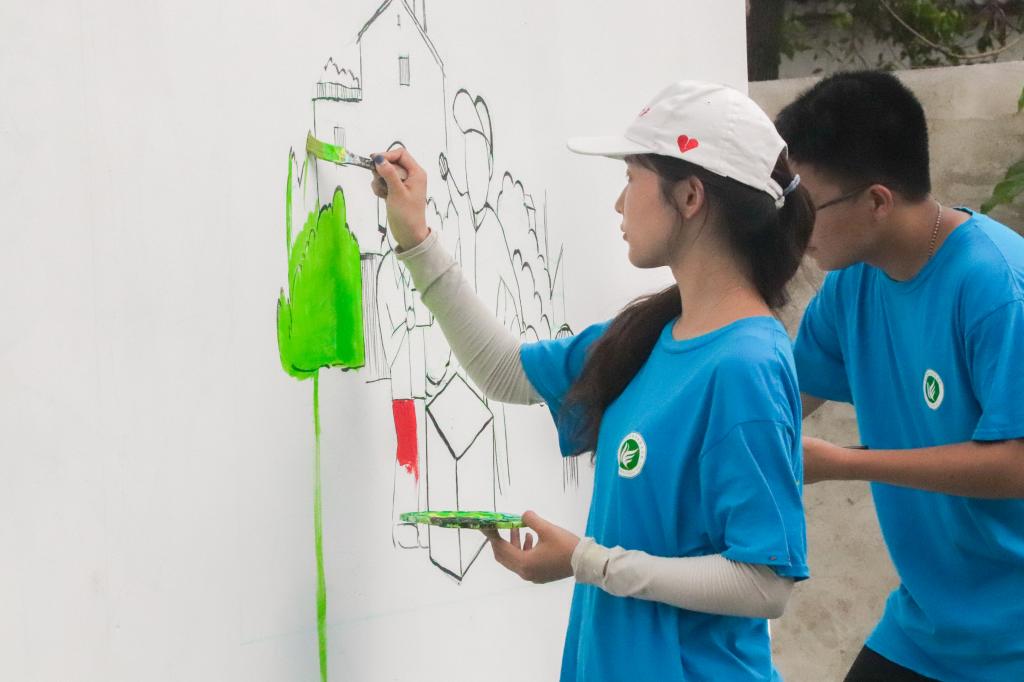 此次暑期社会实践以“用青春画笔,绘美丽乡村”为主题,充分发挥学生专业特长,极大提升他们的实践动手能力。师生们对句容市边城镇佴池村、青山村进行充分的前期调研,运用山水、彩绘、书法等艺术手法,绘制乡风明德文化墙,结合两个自然村丰富的物产和传统文化进行墙绘设计,将社会主义核心价值观、礼仪廉孝、自然生态、村庄文化、地方特色、文明标语等内容生动形象地呈现,通过简洁明了的艺术形式让人文艺术与自然相融合。