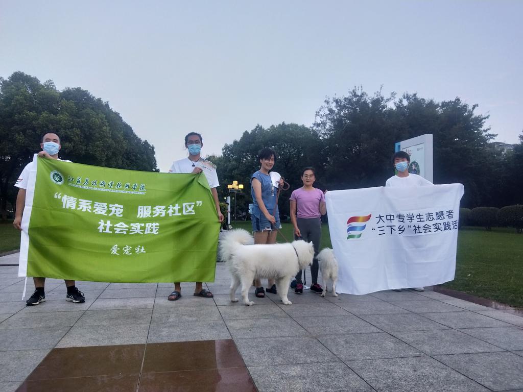 暑期中,畜牧兽医学院团委爱宠社暑期社会实践团分别在江苏句容、安徽安庆、安徽芜湖、贵州遵义等十余个地区开展以“情系爱宠,服务社区”为主题的暑期社会实践活动,助力文明城市建设。。