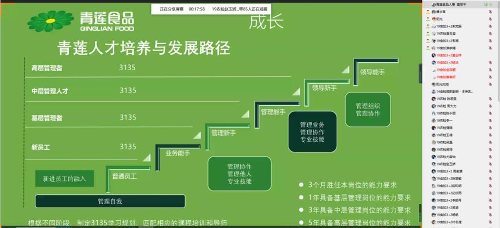 校友王传潞分享了自己的成长路上的苦与乐,他认为,前方的路充满棘荆也会充满鲜花,只要我们立足现实,坚定勇敢,乐学善学,敢于突破,梦想之花终将绚烂绽放。董军平经理介绍了肉类食品加工行业发展状况、公司员工人才培养与发展路径,疫情期间用互联网思维对产业发展进行改造、升级和拓展等。