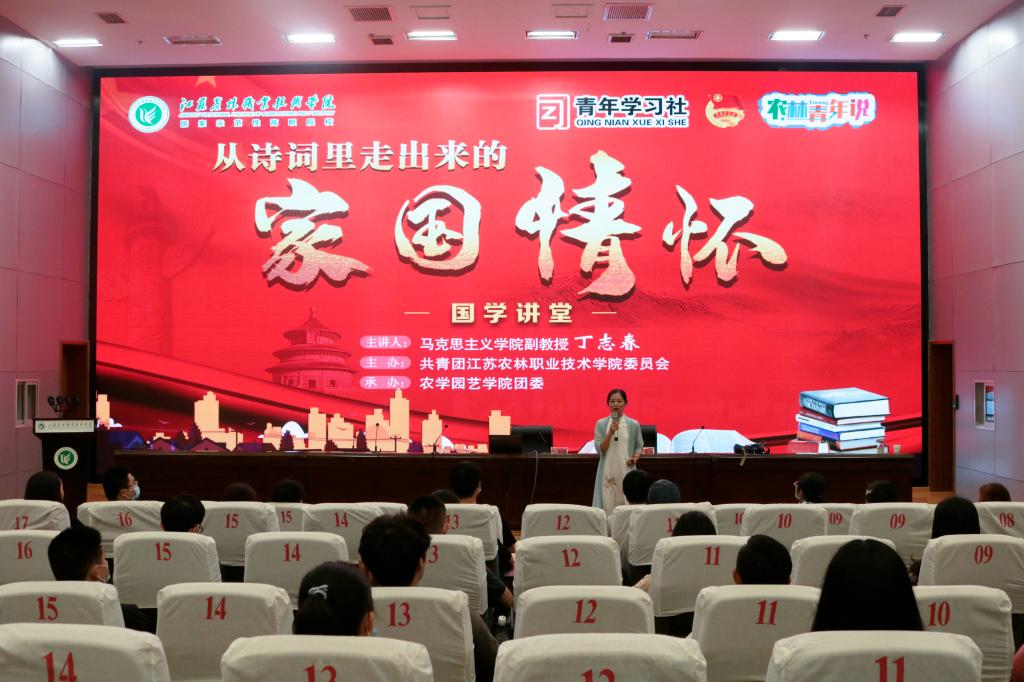 诗长于言志,词长于抒情,“诗词”与“家国”碰撞是历经千年的传承,更是中华儿女共同的情怀。9月30日下午,由学院团委主办、农学园艺学院承办的“农林青年说——从诗词里走出来的家国情怀”讲座在图书馆报告厅举行,本次讲座邀请到了马克思主义学院丁志春副教授主讲,学院150名同学参加了此次活动。