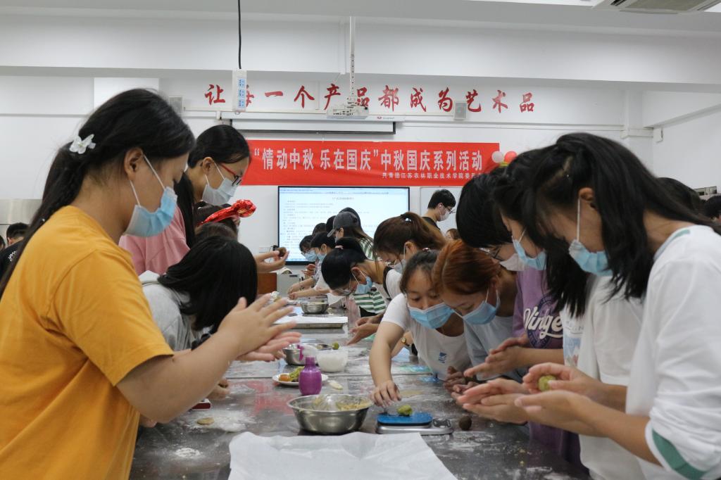 10月1日,由风景园林学院团委承办的“情动中秋乐在国庆”之户外瑜伽活动在体育馆门口与同学们开启假日“派对”。悠扬的音乐声中,同学们跟随老师们完成所有的瑜伽体式,不断突破自己的身体极限,经过老师示范和自由练习后,有三位同学非常出色的完成了后弯体式,在场同学纷纷点赞。由农学园艺学院团委承办的“月满中秋,情满游园”双节同庆游园会活动在北校区励志广场举行,活动分为“张灯结彩,欢度佳节”“诗词荟萃,飞花寻梦”“火树银花,步月登云”“并肩作战,共铸圆满”“欢欣鼓舞,逐星赶月”“团圆走月,相见如愿”“齐聚中秋,圈圈向农”7个活动区,包含猜灯谜、飞花令、弹瓶盖、套圈圈、许心愿、指压板等7个小游戏,同学们通过参与活动收集丝带,参与兑奖。除此之外,活动还准备了精彩的汉服表演。在场师生纷纷参与到精心准备的庆双节活动和趣味体验中,现场热闹非凡。由茶与食品科技学院团委承办的“满月思乡,百味情长”学生动手制作月饼体验活动在实验楼A101烘焙教室举行。第六届江苏省职业焙烤职业技能竞赛获奖二等奖获得者胡钰琦同学一边向学生们讲解如何捏月饼,一边向同学们演示制作过程。同学们充分发挥想象,动手制作自己的中秋月饼,从揉皮、擀皮、包陷、压制成型,不亦乐乎。由信息工程学院团委承办的露天观影活动在图书馆前广场如期举行。活动开始前,全场千余名同学齐唱歌曲《今天是你的生日》祝福祖国母亲生日快乐,在音乐衬托下,同学们打开手机灯光,随着节奏在夜空中摇晃。当电影里国歌声响起,五星红旗冉冉升起的那一刻,同学们自觉起立,高唱国歌,表达了对祖国母亲崇高的敬意。三轮有奖知识抢答环节将观影活动推向高潮。