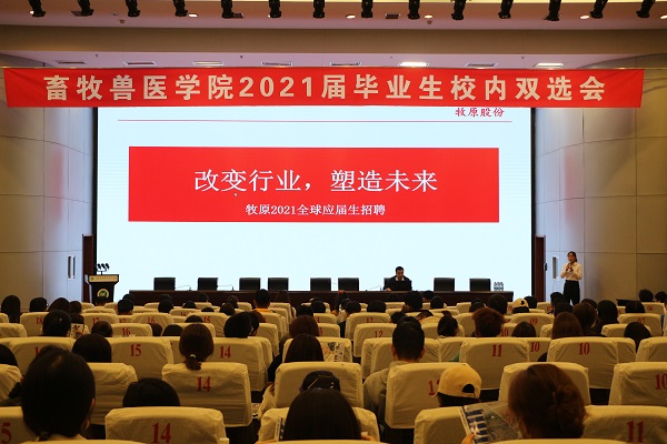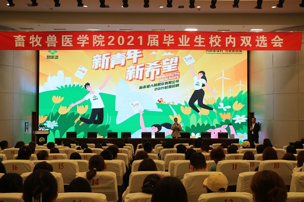 双选会现场,企业与学生积极交流,用人单位不仅给毕业生开出了高薪,更拿出了购房补贴、人才培养计划来吸引学生。据统计,畜牧兽医学院共有425名毕业生参加招聘会,岗位供需比达15:1,充分满足了畜牧兽医学院毕业生的就业需求。