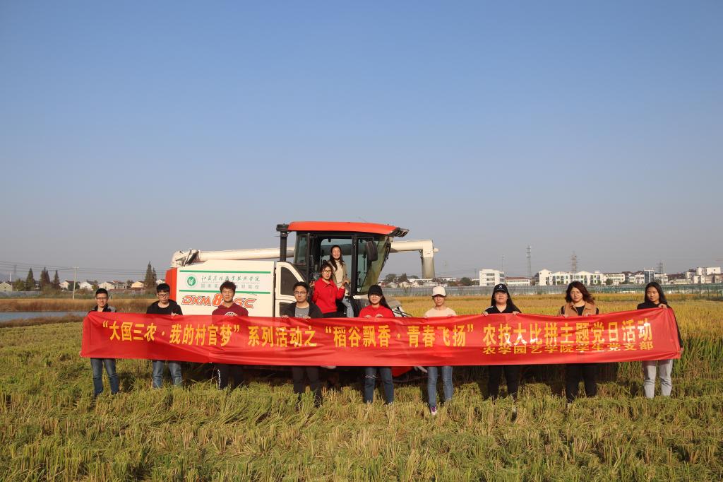 11月7日下午,农学园艺学院组织部分学生党员、发展对象,协同新禾助农服务团共40名成员前往江苏农博园开展了“稻谷飘香,青春飞扬”水稻收割大比拼主题实践活动。