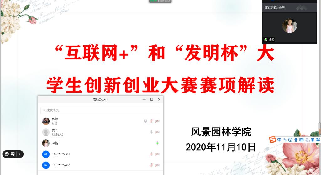 11月10日晚七点,风景园林学院邀请农学园艺学院党总支副书记王全智、该院林草中心副主任刘南清和教研室主任方应才为师生做创新创业大赛赛项解读专题讲座。