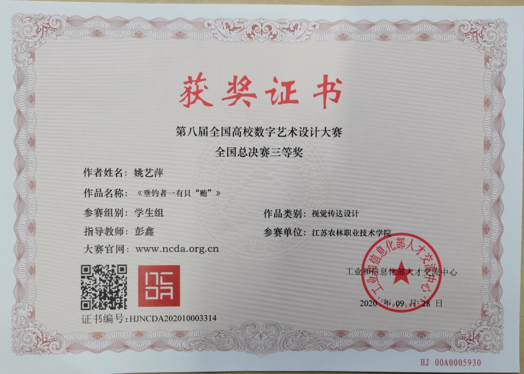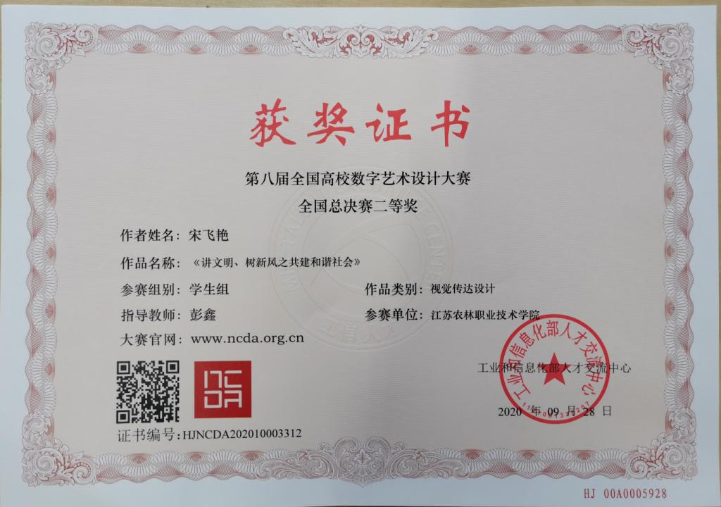NCDA大赛由工业和信息化部人才交流中心主办,是大学生广泛参与的具有广泛影响力的艺术设计领域专业赛事。此次大赛全国参赛高校1106所,共征集作品60113幅。信息工程学院高度重视,坚持以赛促教、以赛促学、以赛促改,提前谋划、精心组织。优异成绩的取得不仅是对学生综合创作能力和教师们专业水平的肯定,更将激励专业培养高素质技术技能人才。