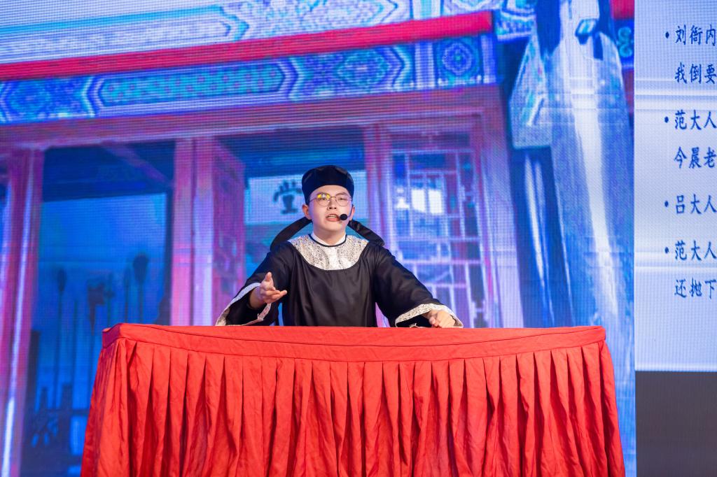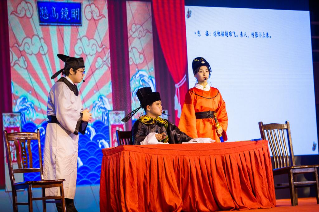 《陈州放粮》以北宋包拯生平事迹为创作蓝本,讲述了北宋末年包拯在陈州,历尽艰难险阻,将倒卖救灾米、克扣救灾银两、残害灾民的贪官拿下,为民除害的故事。活动以舞台剧的形式,通过学生对典型人物故事的演绎,创新思想政治教育的形式,赢得了观众热烈的掌声与喝彩。