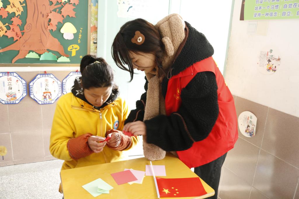 为表达对博爱学校孩子们的浓浓心意,活动前期开展了以“鼓励和传递爱心”为主题的征集活动,收到了同学们用心制作的海报、画作、书法以及明信片等手工作品。12月3日上午,志愿者们带着精美的小礼品来到博爱学校,同学校的孩子们开展“你画我猜”“盲人摸象”“剪折纸”等游戏,志愿者和孩子们共同合作完成游戏,帮助他们提高动手能力和适应社会的能力。游戏结束后,志愿者给孩子们送上精美的小礼品。