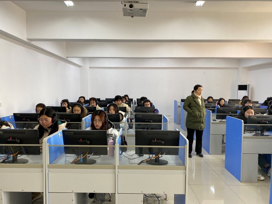 12月5日,2020年下半年《高等学校英语应用能力A、B级》口试顺利举行。此次口试共有110名考生参加考试,分三个机房同时进行。