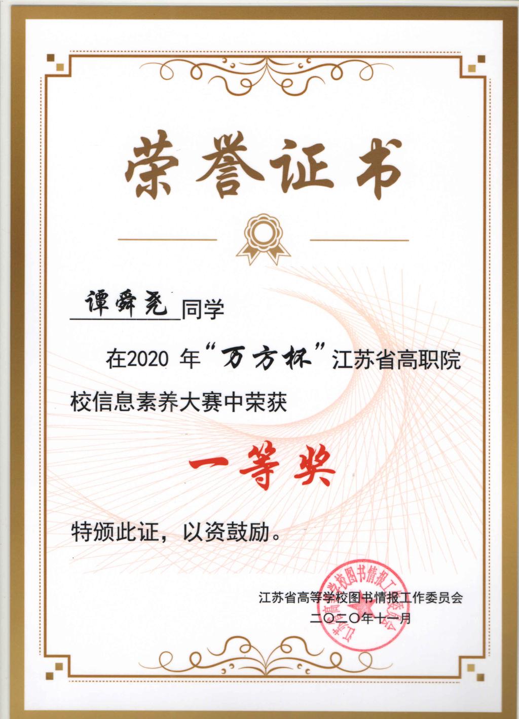 近日,在2020年全省高职院校信息素养大赛(学生个人赛)中,永利官网学子谭舜尧、陈仕雄两位同学荣获一等奖,杨春环同学获二等奖,马向荣同学获三等奖。张田林、李伟和鲁志军三位老师荣获“优秀指导老师奖”,学院荣获“最佳组织奖”。