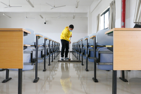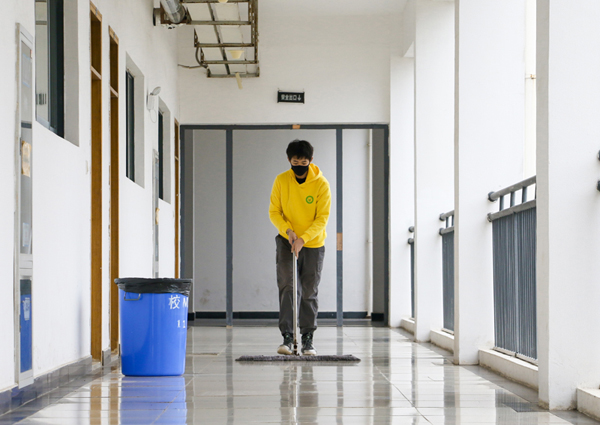 3月7日,校区60名学生组成志愿服务队,对校园进行了大扫,用实践行动传承雷锋精神。