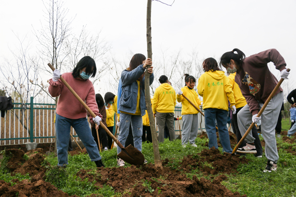 在第43个植树节到来之际,3月10日,茅山校区开展了“践行‘两山’理论,共建绿色家园”主题植树节活动。茅山校区党总支各党员教师、60余名学生参加了此次植树。