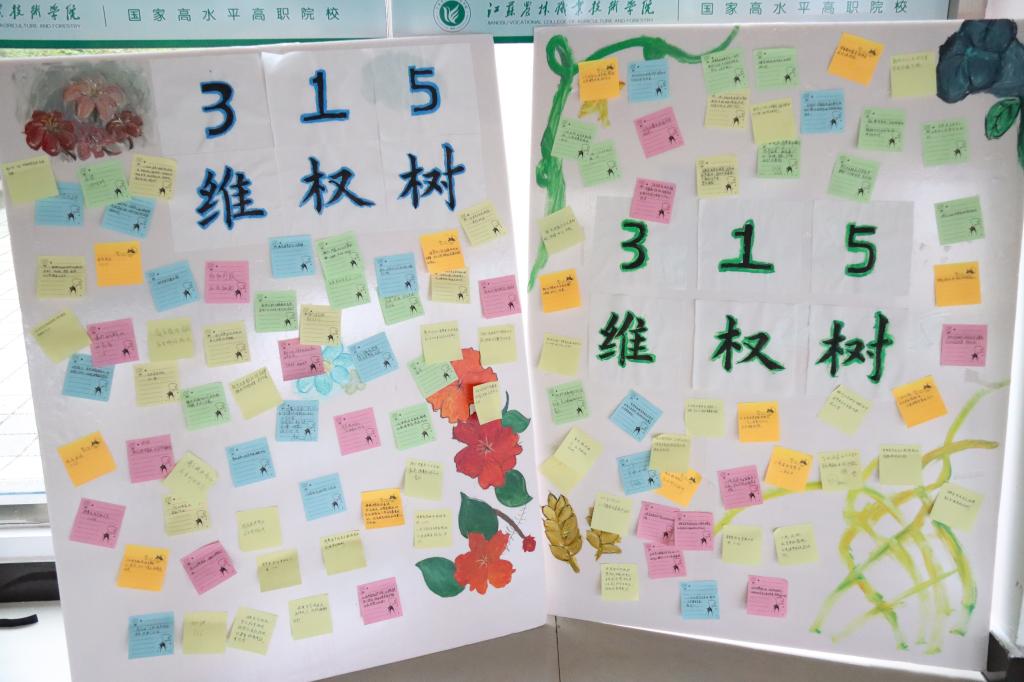 同学们现场讲解消费维权的相关知识,比如购买食物时,要看清食品安全标志,不购买“三无”食品;在日常消费中发现假冒伪劣商品,及时向工商、消协等部门举报;遇到不公平的消费时可拨打12315消费者投诉电话等,以此来增强同学们依法的维权意识。同学们在便利贴上撰写维权小妙招,互相分享并粘贴成“维权树”的形状。大家还制作了错误维权辨识条,让参与的同学现场分辨,以此来加强对消费者权益法的了解。过往同学积极参与,现场维权宣传氛围浓厚。
