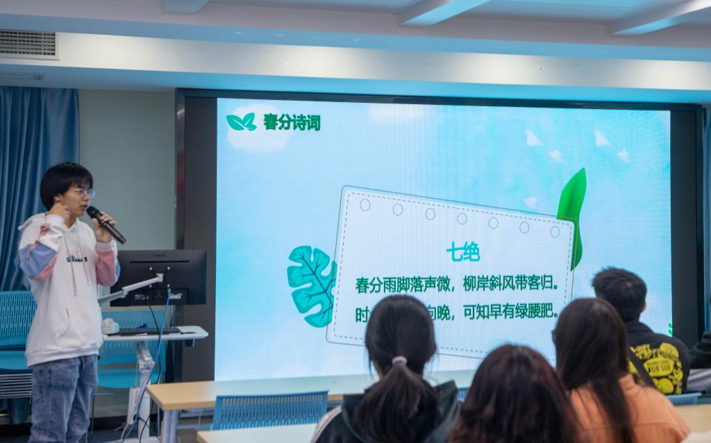 3月18日,信息工程学院团委组织青年大学生在北校区励志广场前举办中国传统文化二十四节气之春分主题活动,带领大家感受春分习俗,温馨如“杨柳青青”,美好如“莺飞草长”。