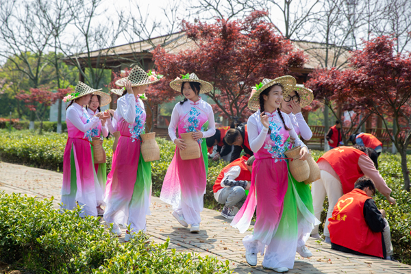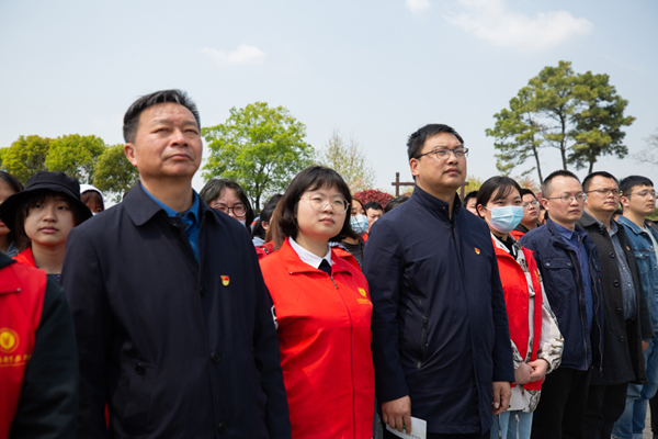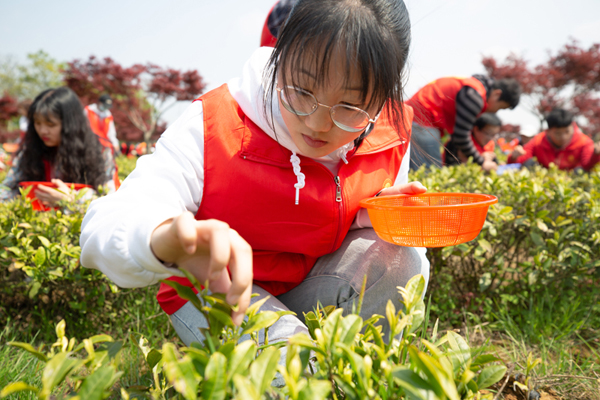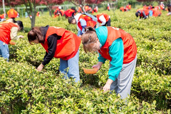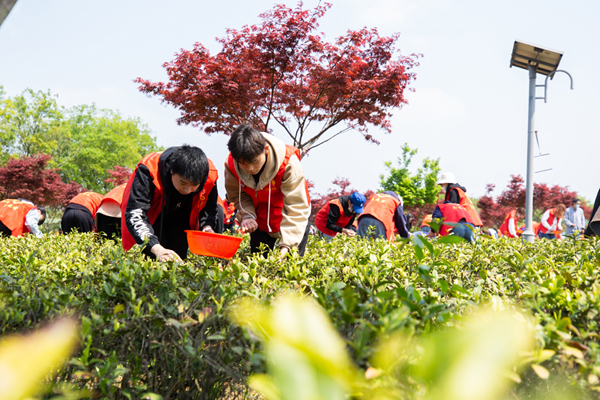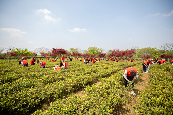 为使党史学习教育“活起来”,4月8日,茅山校区党总支让党史教育走进了田间地头,多元化打造“微党课”,开展了“传承劳动精神 红马甲点缀绿茶园”茶园里的微党课主题活动。茅山校区党总支全体党员教师、500名青年大学生参加。