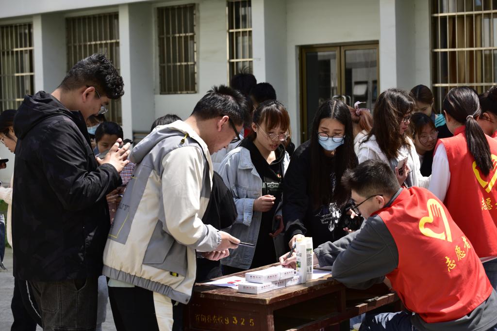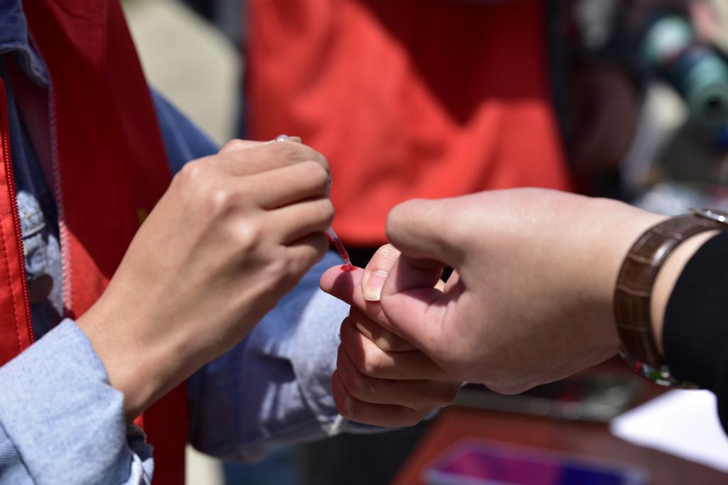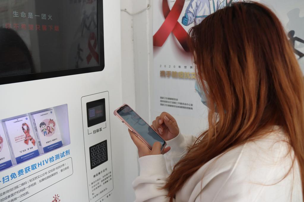 同学们通过扫描智能发放机上二维码免费领取艾滋病检测盒,现场志愿者为同学们讲解了检测盒使用方法,例如怎样采血、检测、显示判断等等。活动现场还引导同学们扫码参加预防艾滋病知识答题,题目有艾滋病的特点、传播途径、预防干预等,帮助同学加深对艾滋病的认识。