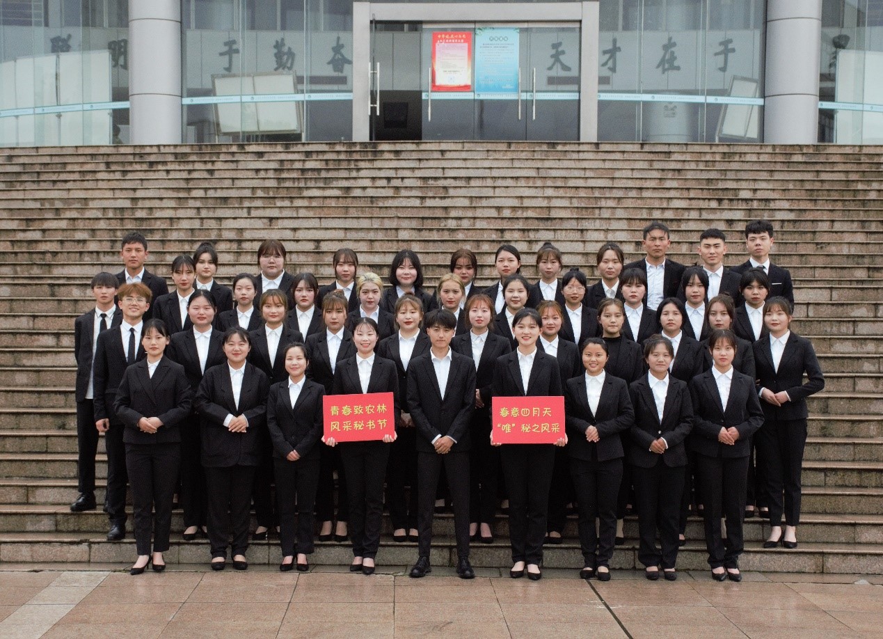“秘”语递真情;4月21日,小秘书们为学校秘书岗位上辛勤工作的老师们送上了祝福卡片,用甜言“秘”语表达了对老师们的美好祝福和衷心感谢。文秘才艺展;文秘专业师生共聚一堂,同学们倾情演绎了走秀、歌舞、诵读、秘书工作情境展示等形式多样的精彩节目,节目还通过哔哩哔哩平台线上直播,直播热度高达2698。暮春日晡行;21日下午,文秘学子身穿职业装,迈着优雅自信的步伐,环绕校园行走,留下了青春的身影,展现了秘书特有的职业风采。