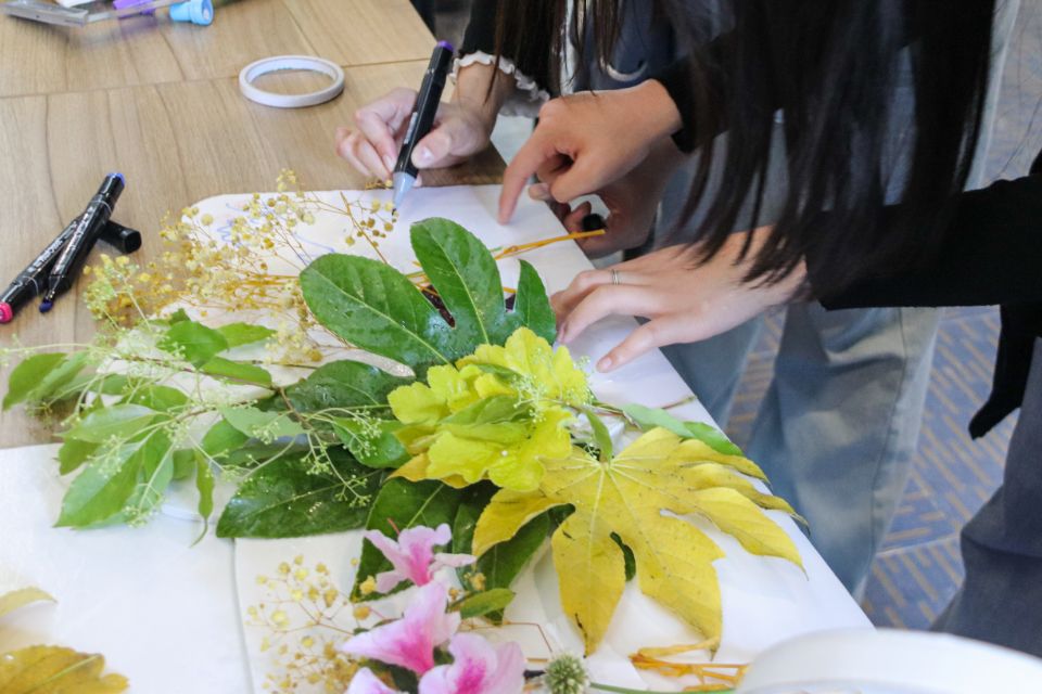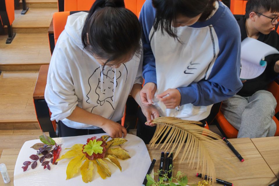 活动中,同学们积极动手操作,大开脑洞,发挥创新能力,利用校园内的枯枝和掉落的树叶、花瓣,进行加工和改造拼出实用的装饰画,用实际行动为地球减负,为环保贡献自己的力量。