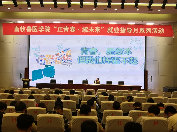 4月26日,畜牧兽医学院在图书馆报告厅举办“正青春·续未来”就业指导月之优秀校友分享会,邀请了翟宁生、王雪梅、吴永凤三位就业创业校友与在校学生面对面交流,畜牧兽医学院200余名学生参加了此次分享会。