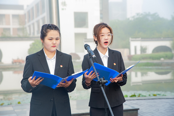 8名团员青年给在场师生演绎了《致先辈》,致敬和怀念不畏牺牲的青年先辈们。在低沉舒缓的音乐中,全体师生聆听了来自20文秘班张荣荣的红色家书《愿润之革命早日成功》,朗读者时而高昂、时而低沉的声音,深情诠释了感人肺腑的红色家书,再现了中国第二位女共产党员杨开慧为了支持丈夫、支持革命,不惜牺牲生命的伟大女共产党员形象。